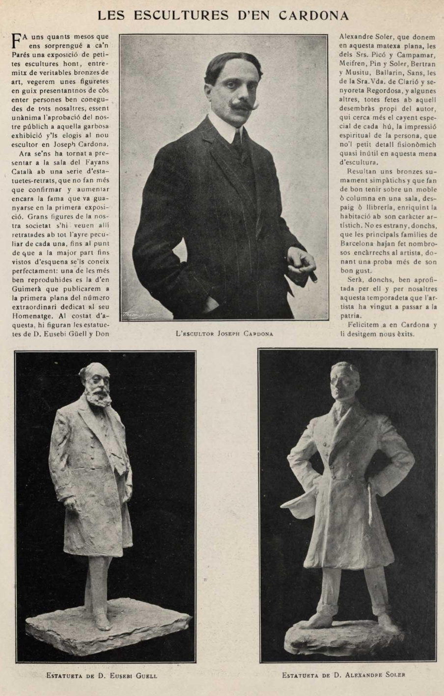 Returning from Argentina and after a few days in Madrid, the notable sculptor Joseph Cardona is in our city […] We give our cordial welcome to the artist, rejoicing in the triumphs achieved in America, which are ultimately triumphs for Catalonia.