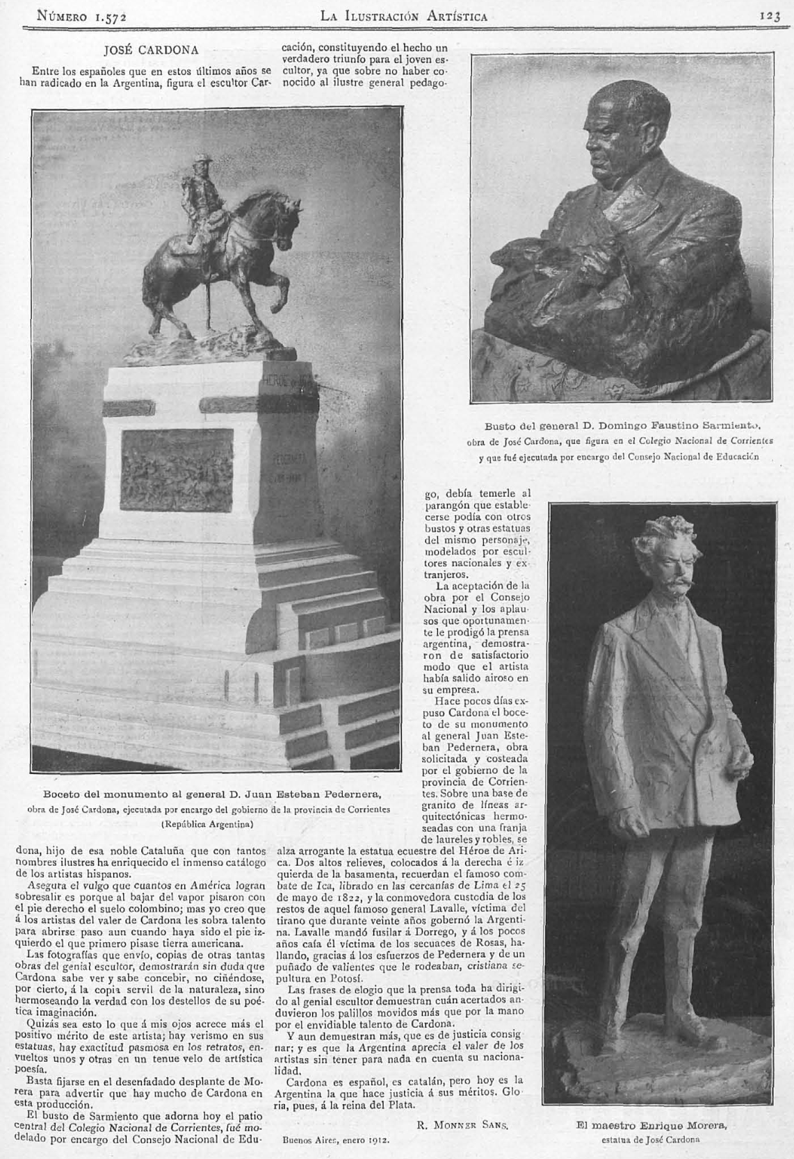 In fact, praise of Cardona would continue even after sculpting the funeral monument for Marco Avellaneda (La Ilustración Artística, Year XXXI, Nº 1572):