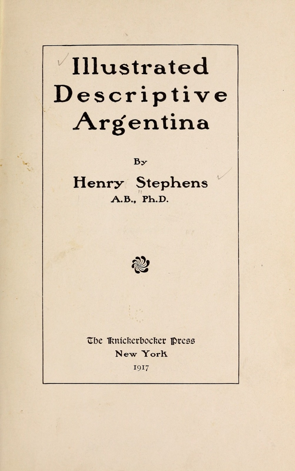 Published in 1917, Illustrated Descriptive Argentina by Henry Stephens might be perhaps the most literal book title ever conceived. But as explained in the foreward, the author considers this the best way to describe Argentina: