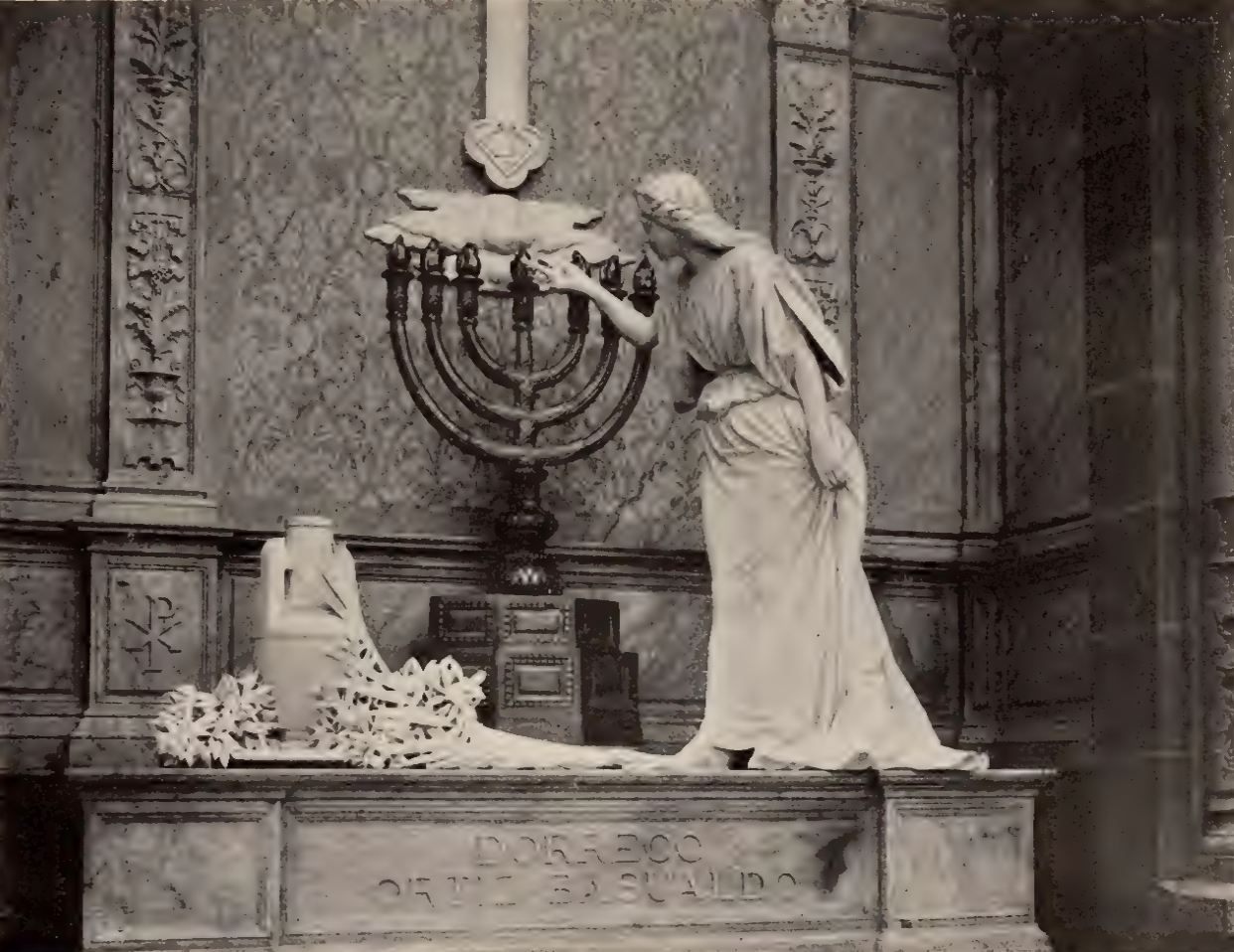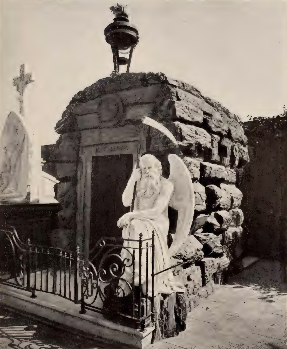 That of the Semino family was inaugurated a few months ago. It is a mythological version of Time, a humanized Saturn, in white Carrara marble waiting near a door, which rests on a piece of black marble. The robust, muscular build of the old man was modeled with vigor and skill by Mr. Fabiani.