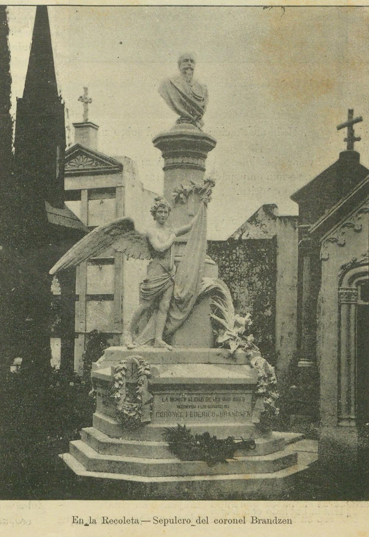 Paid for by public subscription, the statue by Italian sculptor Odoardo Tabacchi occupied a prominent location along the back wall of the cemetery from 1893 to 1928. After several changes of location & now called the “Monumento a Luis Viale,” the statue can be found in Costanera Sur, dwarfed by neighboring highrises of Puerto Madero:
