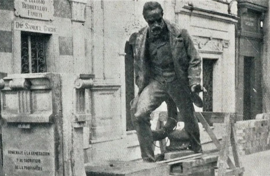 Paid for by public subscription, the statue by Italian sculptor Odoardo Tabacchi occupied a prominent location along the back wall of the cemetery from 1893 to 1928. After several changes of location & now called the “Monumento a Luis Viale,” the statue can be found in Costanera Sur, dwarfed by neighboring highrises of Puerto Madero: